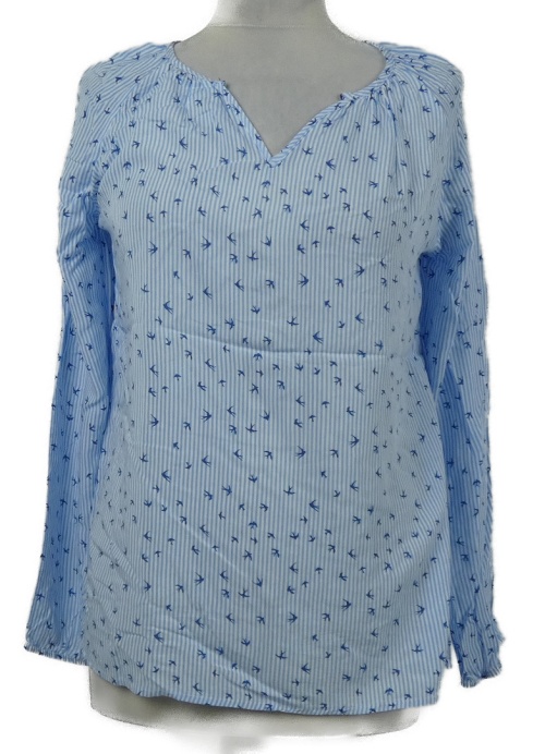 Dámská světlemodro-bílá proužkovaná halenka s ptáčky