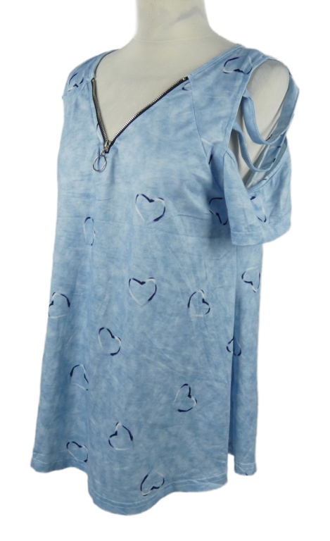 Dámská svělemodrá halenka se srdíčky a volnými rameny