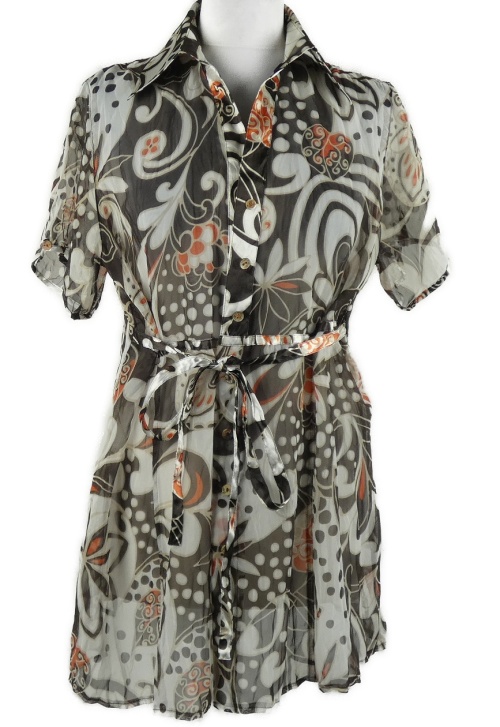 Dámská hnědo-bílá květovaná šifonová halenková tunika s páskem Bonita