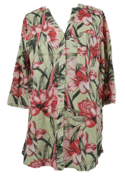 Dámská světlezelená květovaná halenková tunika Laura Torelli