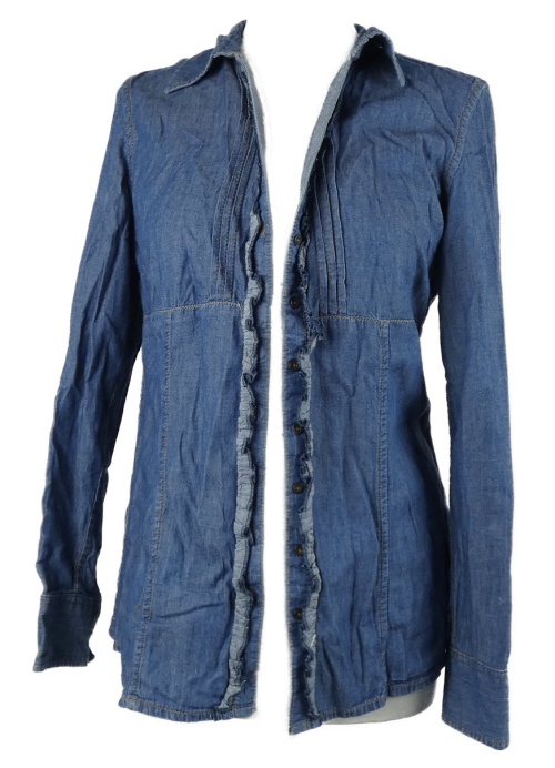Dámská modrá halenka riflového vzhledu s volánky S. Oliver