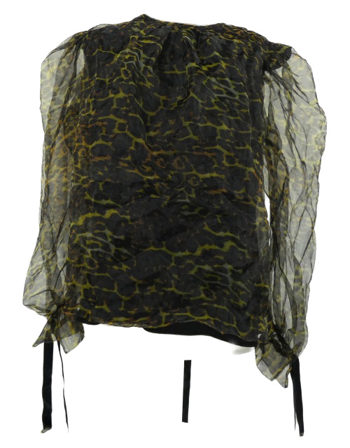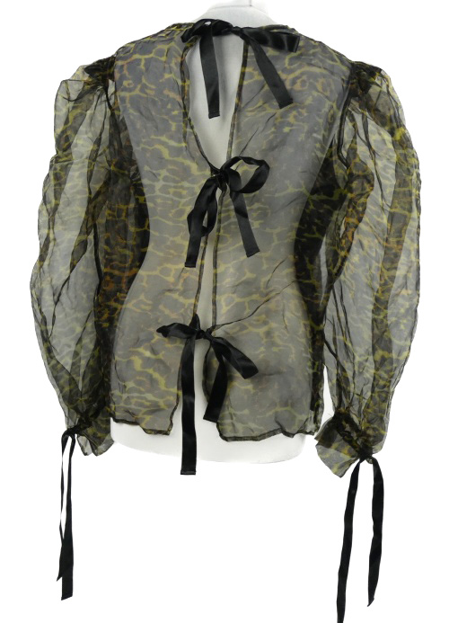 Dámská černo-khaki vzorovaná organzová halenka s mašlemi Topshop