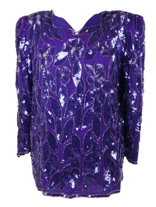 Dámská fialová květovaná flitrová halenka