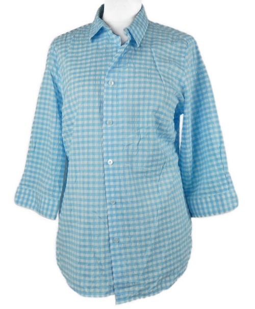 Dámská světlemodro-bílá kostkovaná krepová halenková tunika Walbusch