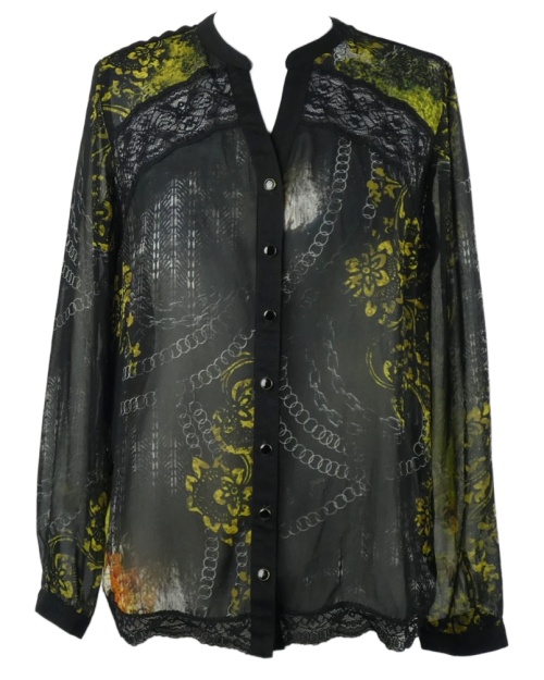 Dámská černo-žlutá vzorovaná šifonová halenka s krajkou Pause Café