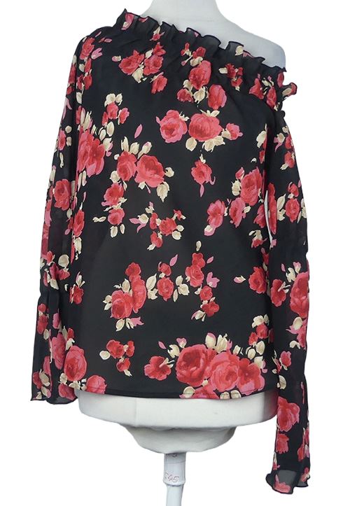 Dámská černá květovaná šifonová halenka s lodičkovým výstřihem Kaleidoscope
