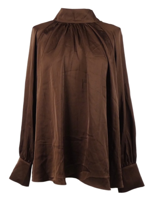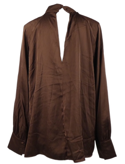 Dámská hnědá saténová halenka se stojáčkem H&M