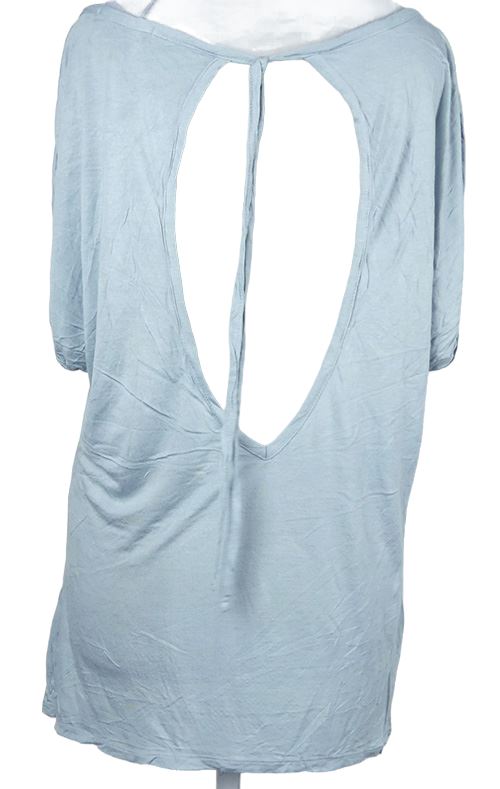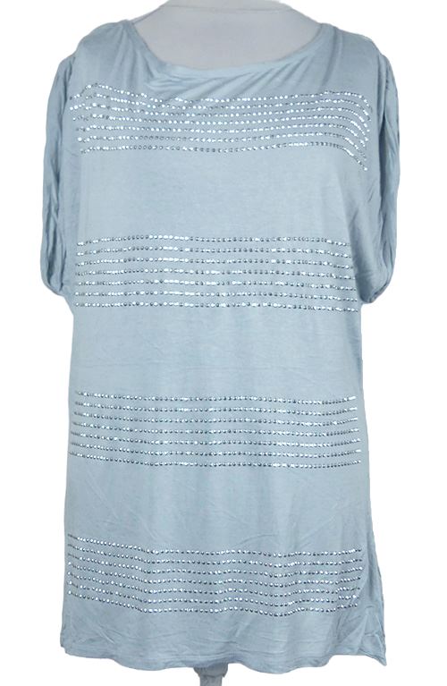 Dámská světlemodrá pruhovaná halenka s kamínky a volnými zády Oli