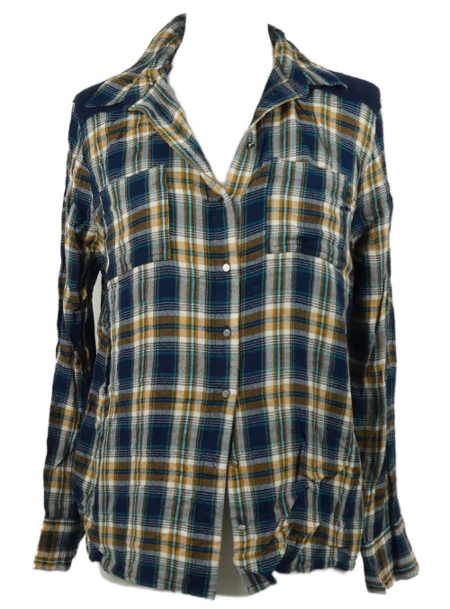 Dámská tmavomodro-okrová kostkovaná halenka TU