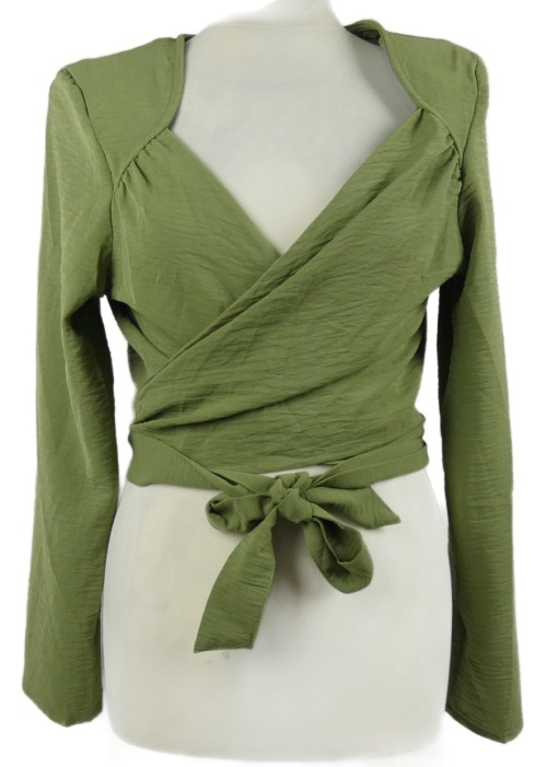 Dámská khaki strukturovaná crop zavinovací halenka Miss Guided