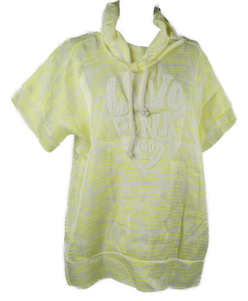 Nové - Dámské bílo-žluté pruhované tričko s nápisem a límcem