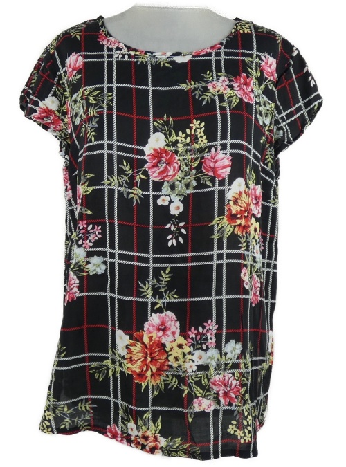 Dámská černo-červeno-bílá kostkovaná květovaná halenka Jean Pascale