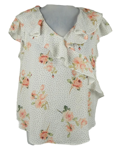 Dámská bílá puntíkovaná halenka s květy a volánkem Wallis