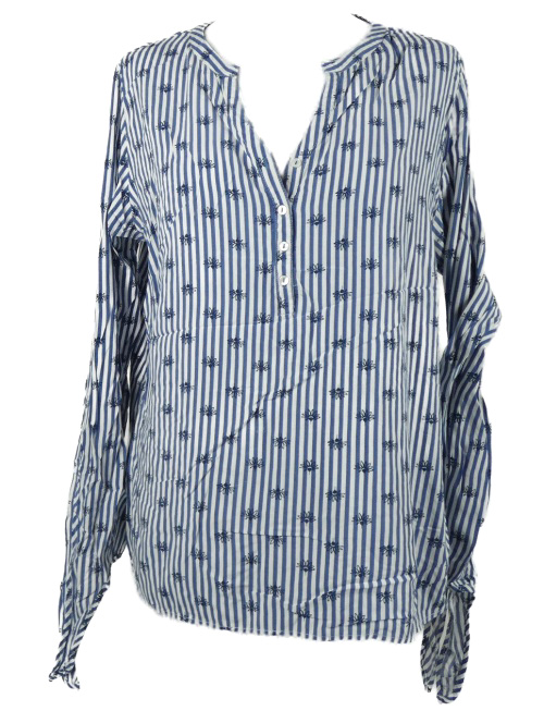 Dámská tmavomodro-bílá pruhovaná halenka s kytičkami Tchibo