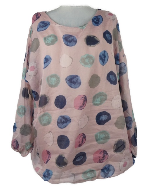 Dámská růžová puntíkovaná šifonová balonová tunika Tesini