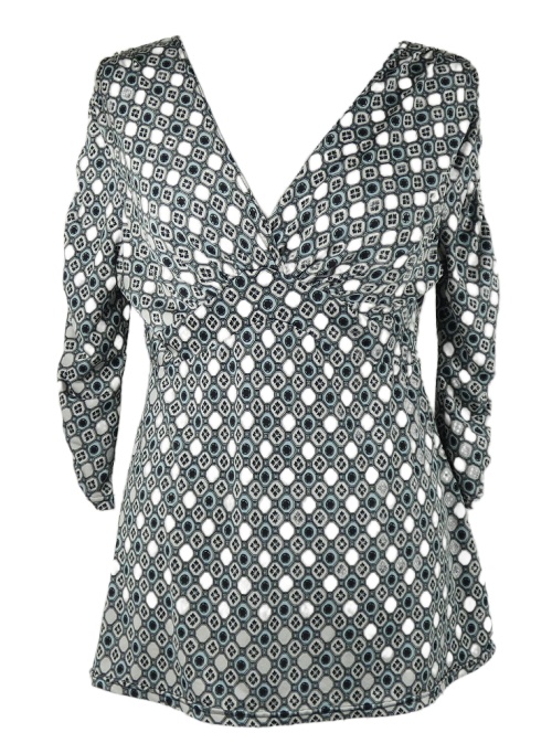 Dámská černo-smetanovo-světlemodrá vzorovaná tunika s hlubokým výstřihem