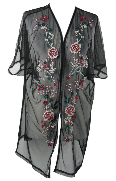 Dámský černý květovaný tylový cardigán