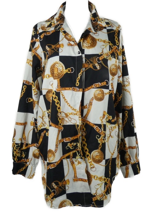 Dámská bílo-tmavomodrá kostkovaná halenková tunika s potiskem