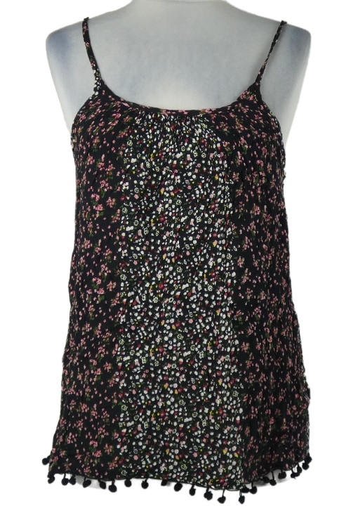 Dámský černý halenkový květovaný top s bambulkami Primark