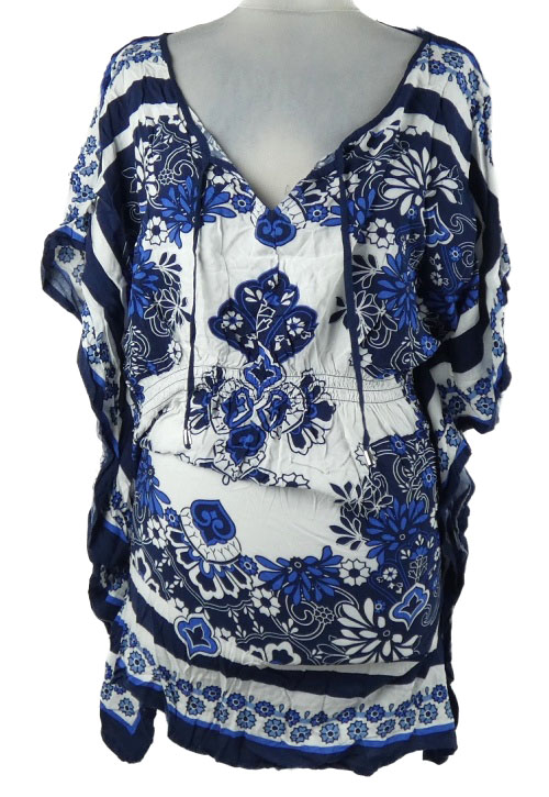 Dámská bílo-modrá vzorovaná plážová tunika TU