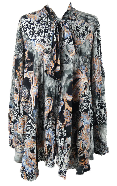 Dámská černo-šedo-oranžová vzorovaná halenka s mašlí