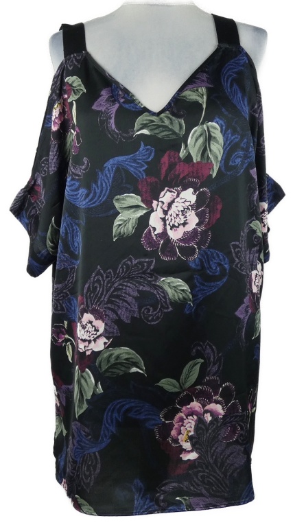 Dámská černá květovaná saténová tunika s volnými rameny Soon