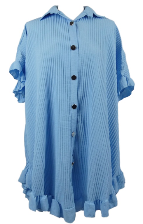 Dámská světlemodrá plisovaná halenková tunika s volánky