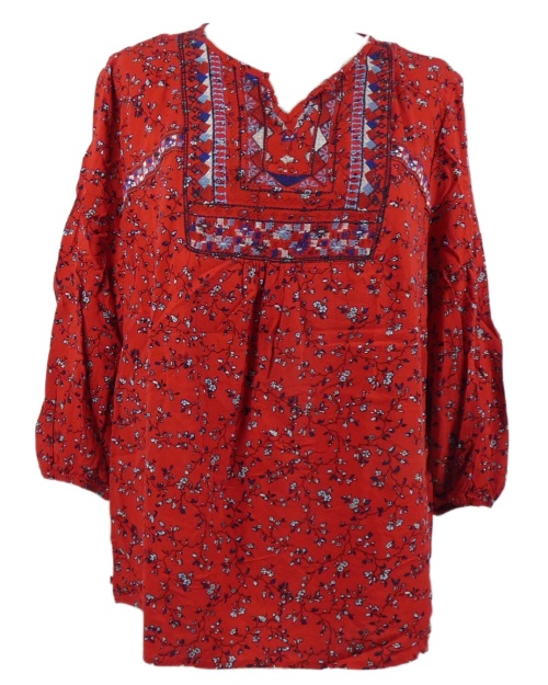 Dámská červená kytičkovaná halenka s výšivkou Janina