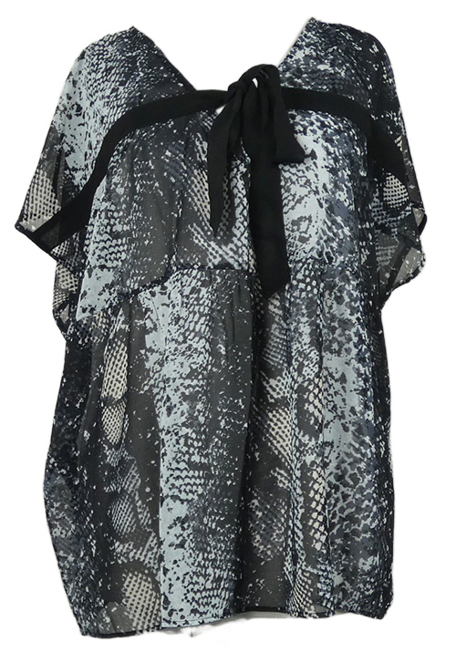 Dámská černo-bílá vzorovaná šifonová halenka s mašlí Mint Velvet