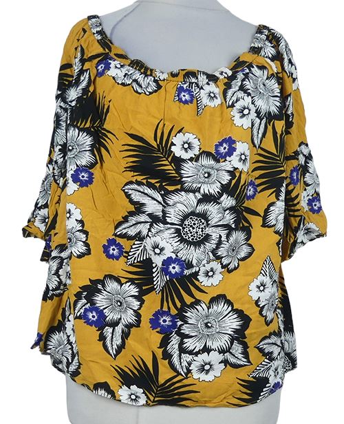 Dámská hořčicová květovaná halenka s lodičkovým výstřihem Papaya