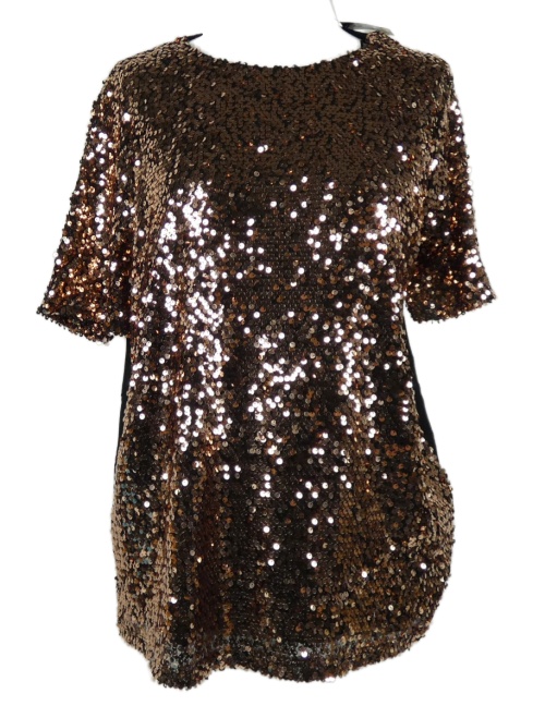 Nové - Dámské černo-bronzové flitrové tričko Dunnes
