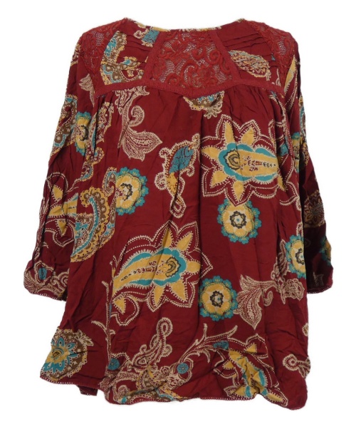 Dámská tmavočervená květovaná halenka s krajkou TU