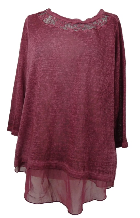 Dámská vínová melírovaná tunika s krajkou a šifonovým volánem Janina