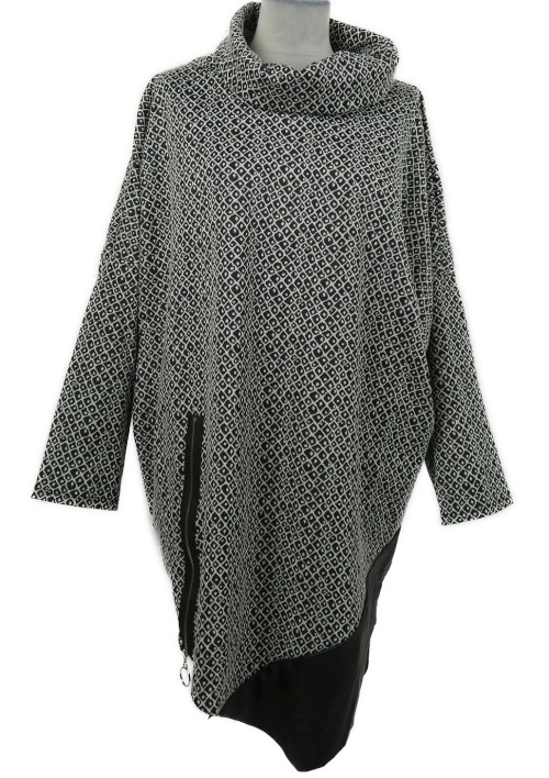 Dámské tmavošedo-bílé vzorované pončo s komínovým límcem Lisa