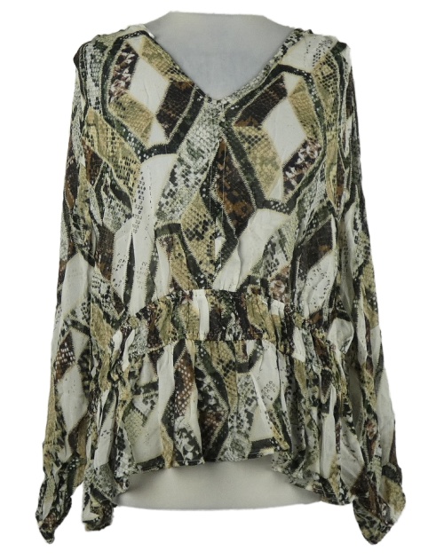 Dámská hnědo-khaki-bílá vzorovaná šifonová peplum halenka H&M