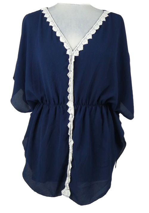 Dámská tmavomodrá šifonová halenka s madeirou JT exclusive