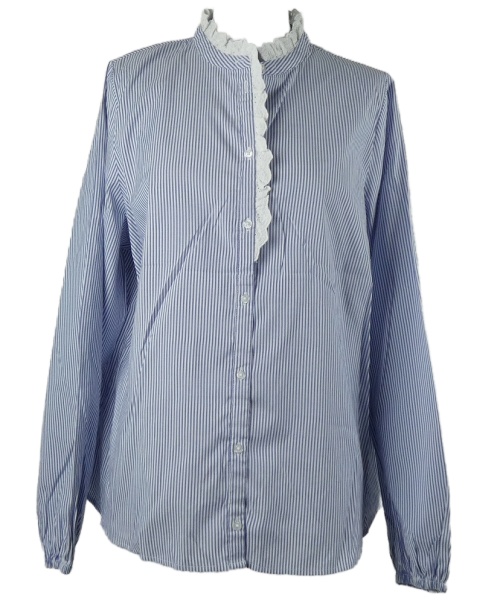 Dámská modro-bílá proužkovaná halenka s madeirovým volánkem Matalan