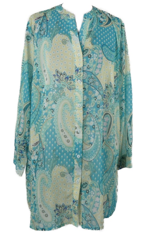 Dámská modro-žlutá kytičkovaná šifonová halenková tunika