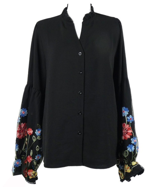 Dámská černá halenka s květovanými rukávy Emery Rose