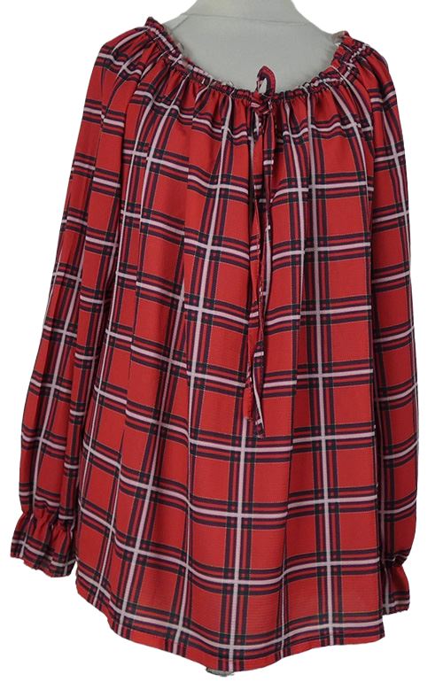 Dámská tmaavorůžovo-tmavošedá kostkovaná halenka s lodičkovým výstřihem Via Cortessa