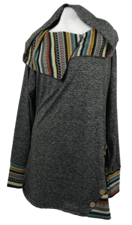 Dámská šedo-barevná vzorovaná tunika a s kapucí