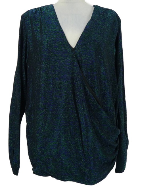 Dámská tmavomodro-zelená třpytivá balonová halenka Joanna Hope vel. 54