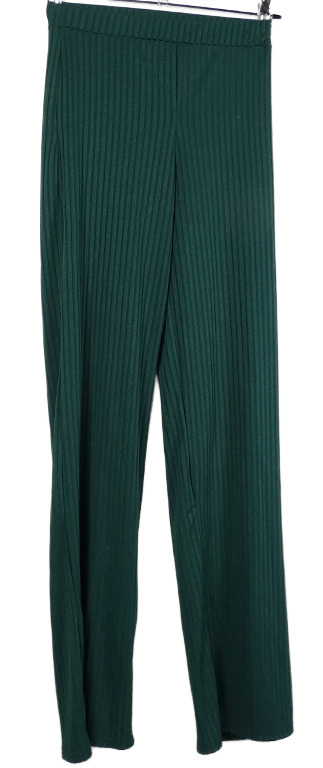 Dámské tmavozelené žebrované palazzo kalhoty