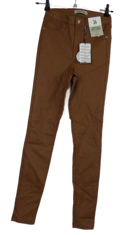 Nové - Dámské skořicové potažené skinny kalhoty Denim