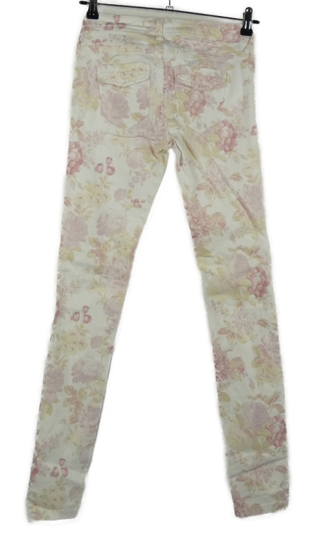 Dámské bílo-růžové květované skinny rifle
