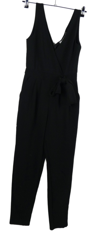 Dámský černý kalhotový overal s mašlí