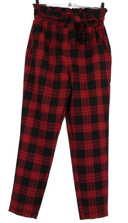 Dámské červeno-černé kostkované paperbag kalhoty s páskem Primark
