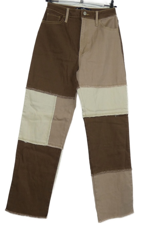 Dámské béžovo-hnědé kostkované široké rifle Hollister vel. 27/31