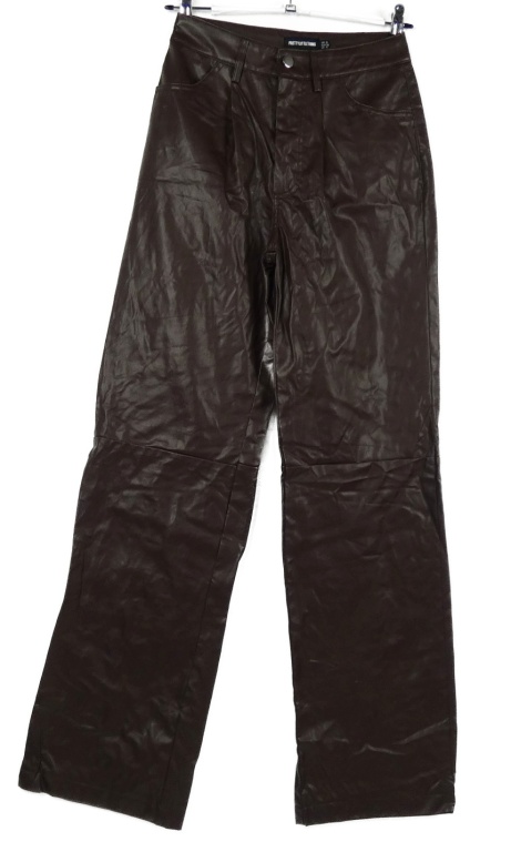 Dámské hnědé koženkové široké kalhoty PrettyLittle Thing