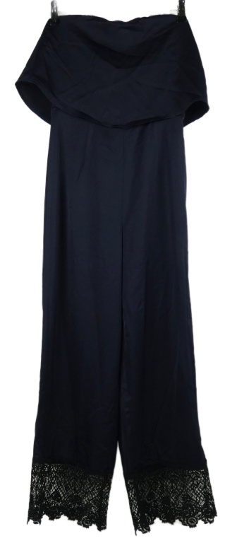• Dámský tmavomodrý saténový culottes kalhotový overal bez ramínek s krajkou MissGuided